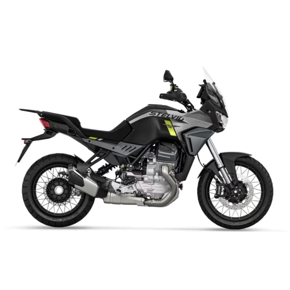 Moto Guzzi Stelvio en acabado bicolor negro y gris. Diseñada para la aventura y el viaje. Matricula no incluida en el precio - Estilo: Adventure - Transmisión: Manual