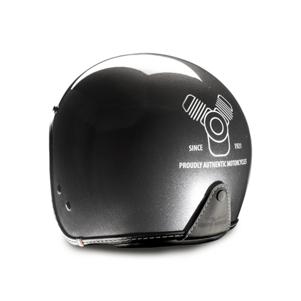 Casco jet, calota de ABS, ligero, cómodo y de estilo único con águila de Moto Guzzi y logo aniversario.