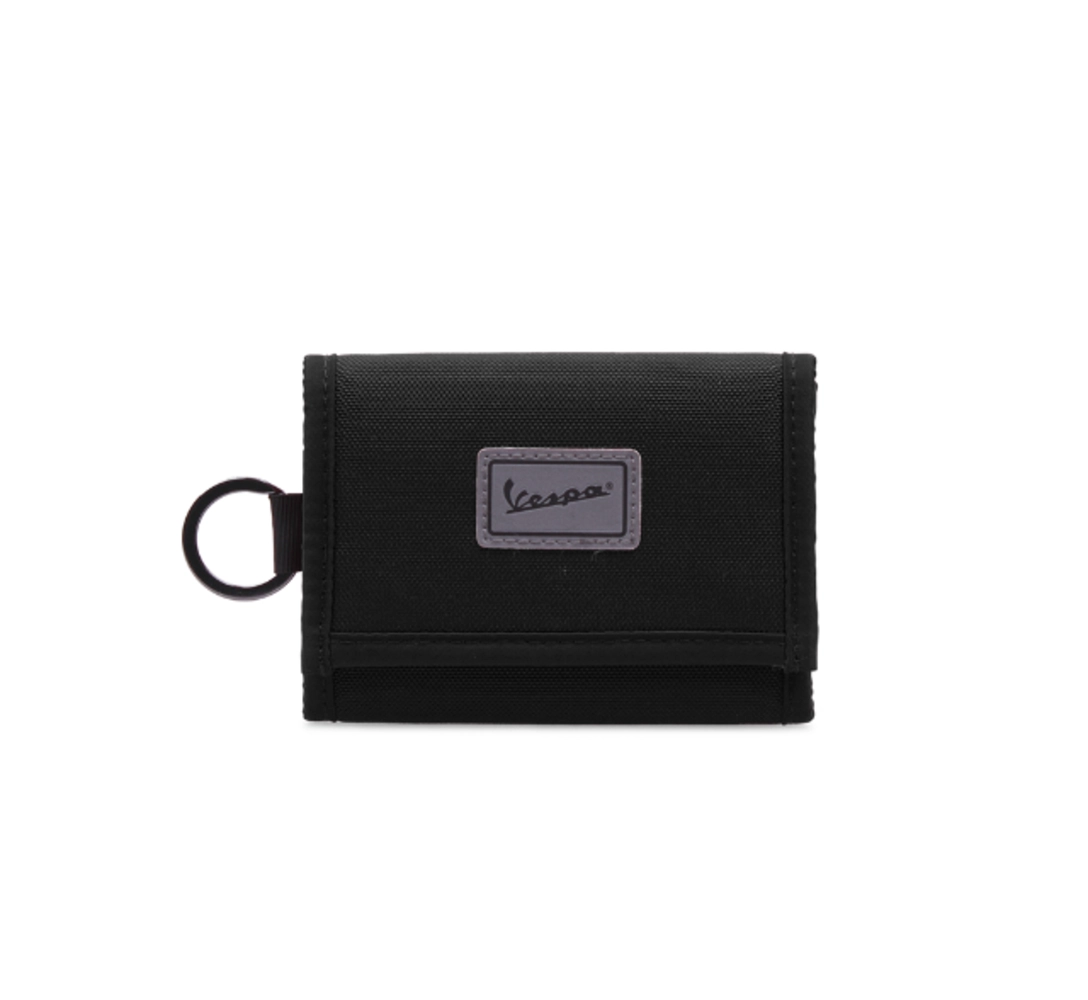 Vespa Trip es una billetera plegable que cuenta con un bolsillo para monedas en la parte posterior gracias al anillo colocado en el lateral podrás colgarlo donde quieras.