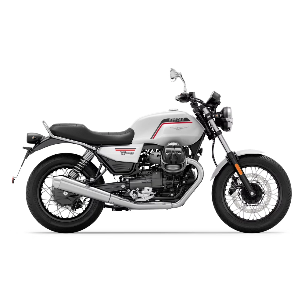 Vuelve la legendaria V7 Sport, una evolución de la icónica moto de Mandello que exalta el alma deportiva de Moto Guzzi. El inconfundible placer de conducción de la V7 se vuelve aún más divertido y preciso gracias al freno delantero de doble disco, la horquilla invertida, el modo de conducción SPORT específico y la plataforma inercial para ABS en curvas y control de tracción.