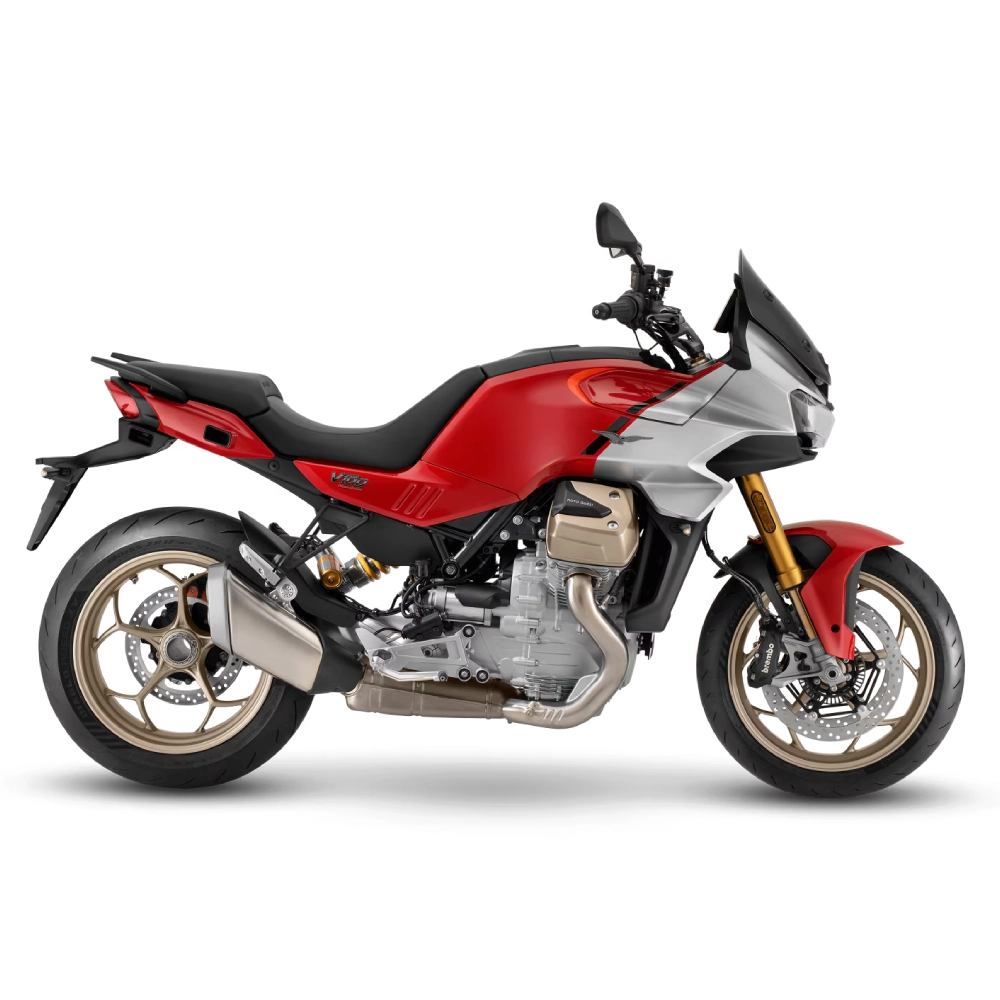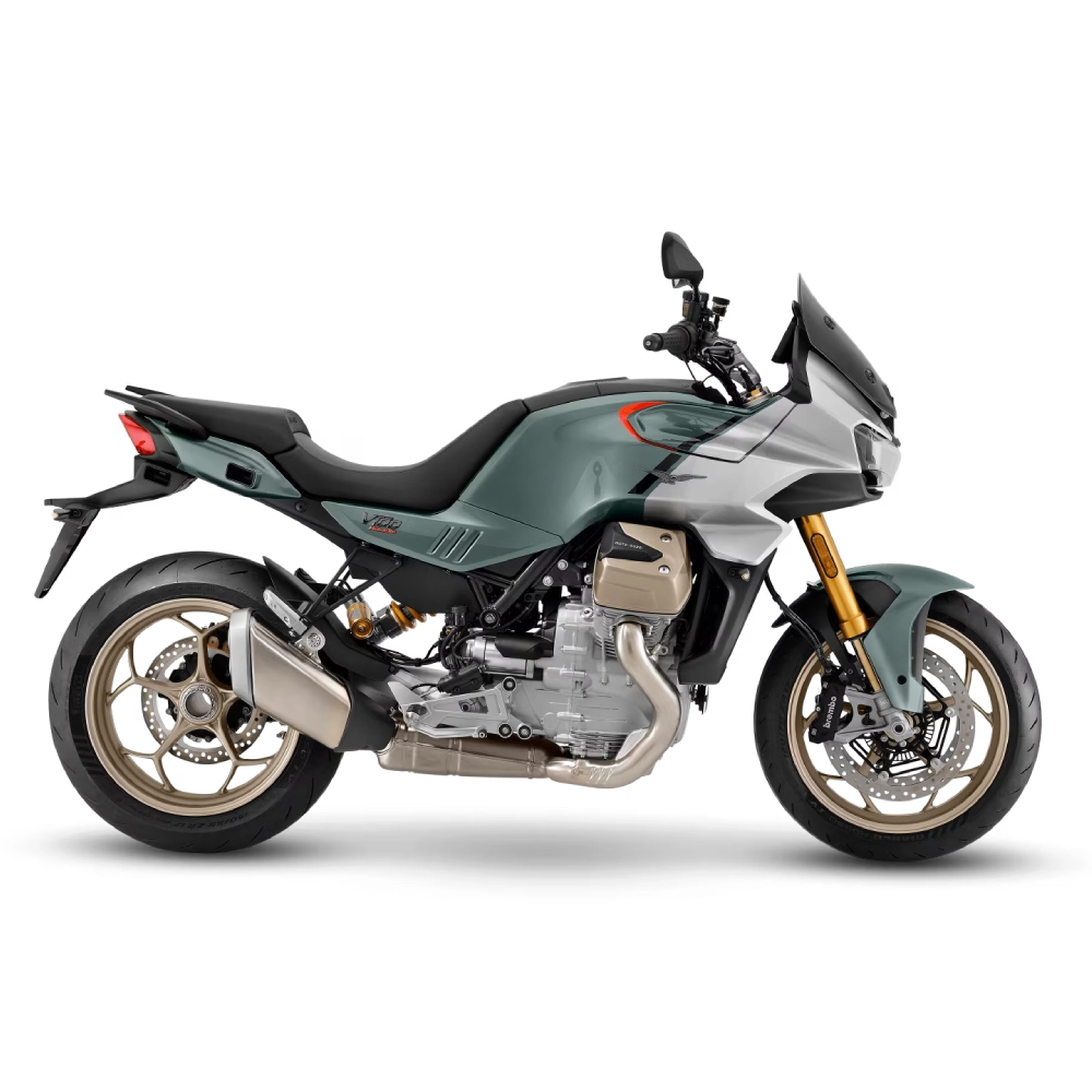 El motor bicilíndrico transversal en V "Compact Block" de 1.042 cc, homologado Euro 5+, desarrolla hasta 115 CV y un par máximo de 105 Nm, con una respuesta inmediata incluso a bajas revoluciones. La combinación perfecta de futuro y tradición que caracteriza también la elección de la transmisión cardán final, rediseñada para garantizar una experiencia de conducción suave y dinámica. Los cuatro modos de conducción te permiten adaptar las múltiples características del V100 a tu estilo de conducción, en cualquier condición.