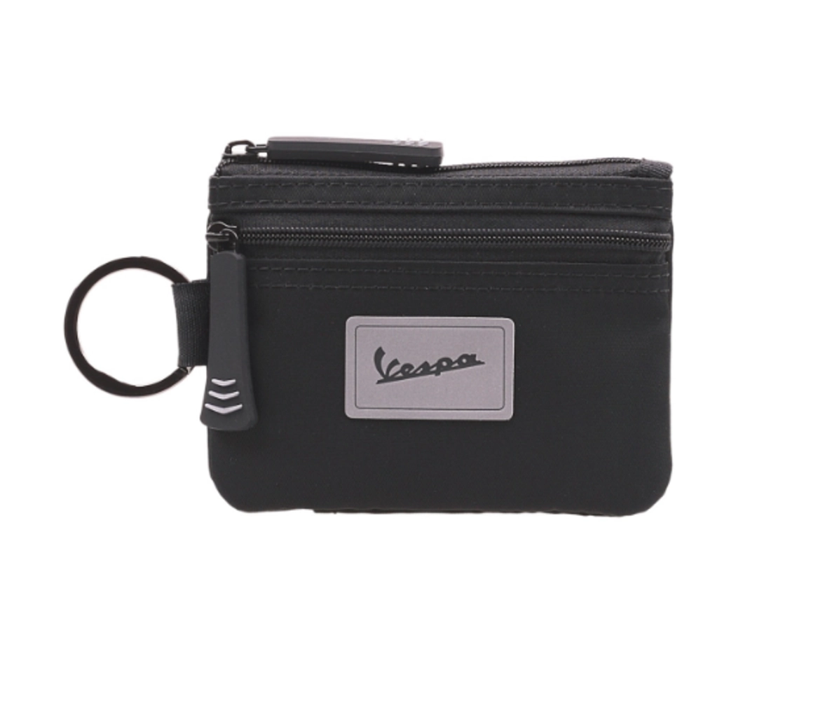 ¡El práctico bolso con el logo Vespa cosido que no se pierde!. Con el llavero de montaje lateral puede fijarlo en una mochila o en una bolsa. Ambos compartimentos tienen una cremallera, el material es repelente al agua.